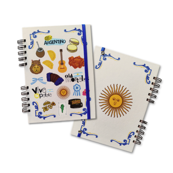 Cuaderno con tapas de 2mm de cartón forrado en papel laminado.