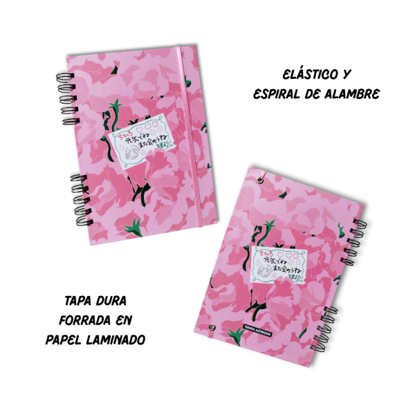 Cuaderno con tapas de 2mm de cartón forrado en papel laminado.