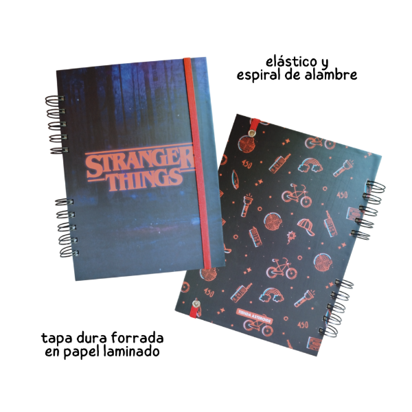 Cuaderno A5 (15x21cm): Tienen 70 hojas de papel ecológico liso o rayado a elección, sobre porta papeles, anillado metálico y elástico.