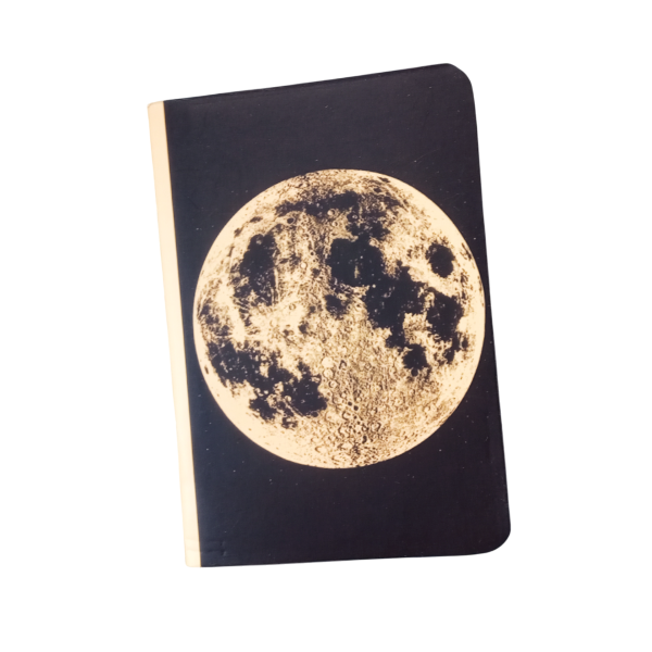 Libreta con lomo abrochado medida A6 (10x14,5 cm) o A5 (14,5 x 20x5 cm). Tiene 40 hojas lisas de papel ecológico ahuesado y tapa blanda.